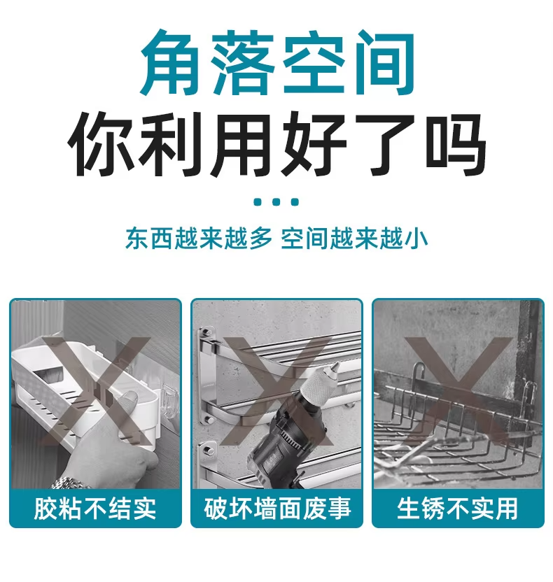 مقاوم للصدأ ومتين: يوفر عمود الزاوية المصنوع من الفولاذ المقاوم للصدأ 304 مع سطح أملس غير لامع مقاومة أكبر للصدأ والتآكل، ويمكن أن يدوم عمود شد رف الدش لسنوات. الصينية ورف المناشف مصنوعان من بلاستيك ABS عالي الجودة.